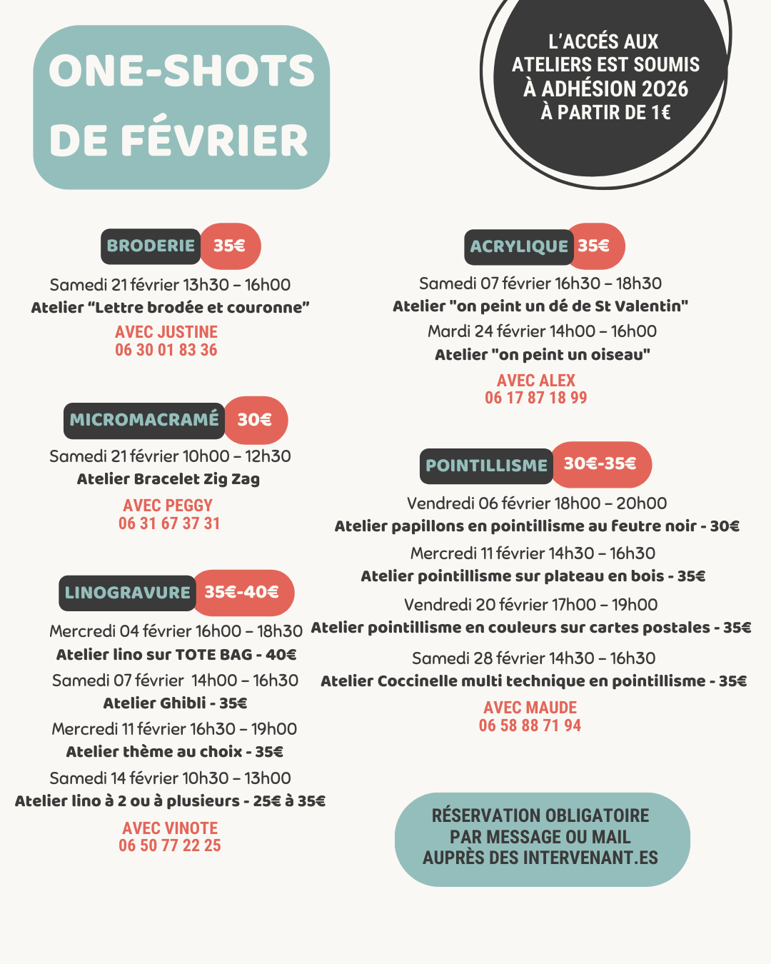 L’adhésion est ouverte à toutes et tous, à partir de 1 €, et permet de soutenir concrètement un collectif local d’artistes et d’artisans.