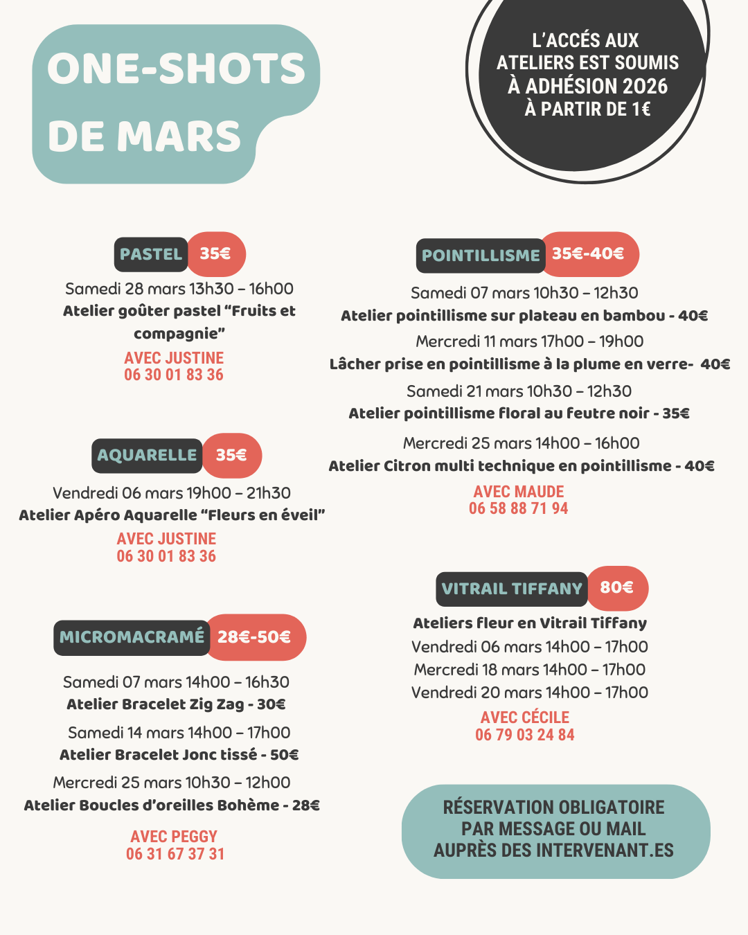 L’adhésion est ouverte à toutes et tous, à partir de 1 €, et permet de soutenir concrètement un collectif local d’artistes et d’artisans.