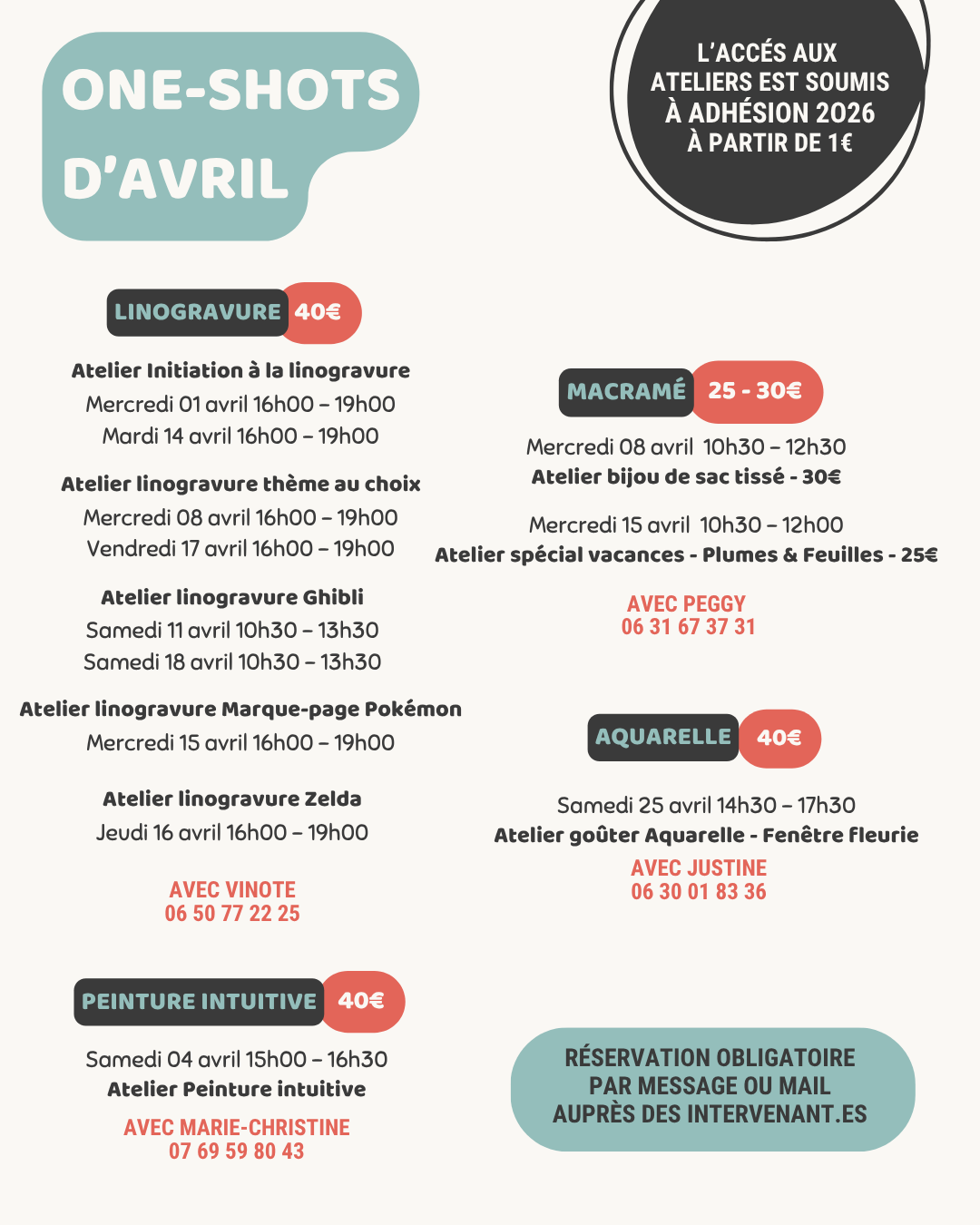 Pour assister à nos cours et ateliers et profiter du café associatif, l’adhésion à l’association est nécessaire.*